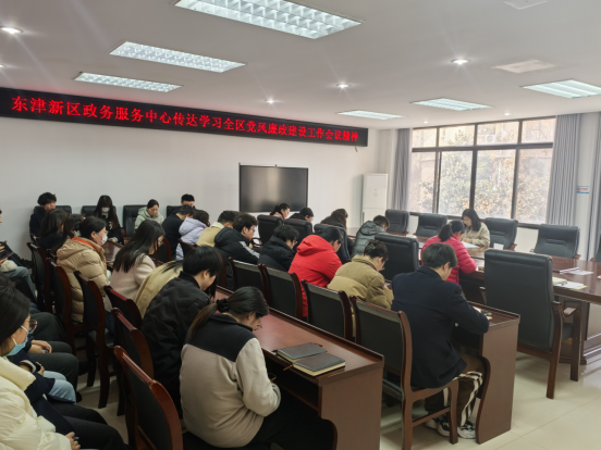 3月6日,东津新区政务服务中心召开全体干部会议,专题传达学习全区党风廉政建设工作会议精神,深入学习徐勇书记讲话精神,重点解读2024年区党风廉政建设工作情况,系统部署2025年工作任务,推动全面从严治党向政务服务延伸。