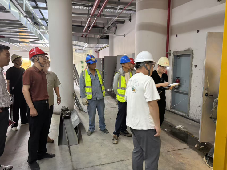 检查组一行随机抽查了汉江流域农贸中心项目在建人防工程建设情况,重点对混凝土防护门与钢结构防护门进行了重点检测,依据人防办颁布的检测标准,对钢结构防护门进行了破坏性拆解检测,检查组对照标准,仔细丈量材料规格、认真核查制作工艺,对门框角钢厚度、门扇钢筋排布密度等关键防护构件性能进行专业评估。