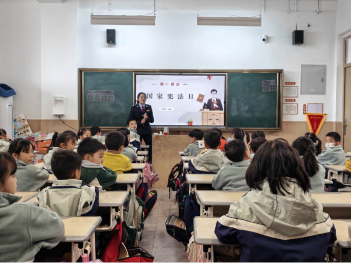 在全国第八个“宪法宣传周”来临之际,为弘扬宪法精神,培育青少年法治观念和依法纳税意识,12月1日,国家税务总局襄阳经济技术开发区税务局“津税先锋”税宣服务队走进辖区华侨城实验学校,围绕“学习宣传贯彻习近平法治思想,推动宪法深入人心”活动主题,为同学们带来了一场别开生面、内容丰富的普法教育课。