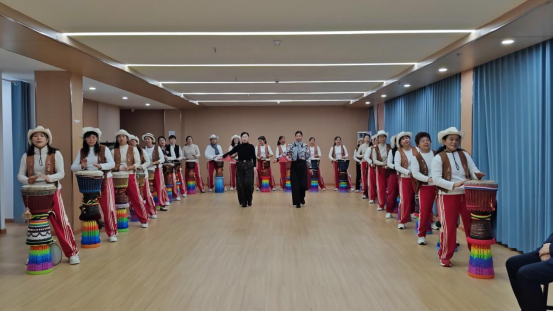 “咚咚锵!咚咚锵!”激昂的鼓点响彻老年大学的活动室,一场融合了非洲鼓、模特走秀与舞蹈的特色班会热烈开场,学员们用活力满满的表演,奏响了迎接新春的欢乐序曲。
