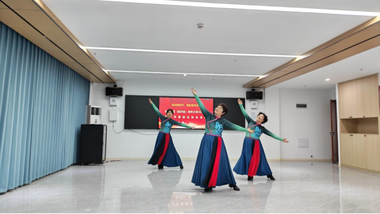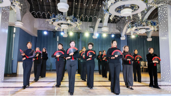 当《过年啦》的欢快旋律响起,现场的气氛被推向高潮。舞蹈队的学员们踩着鼓点翩跹起舞,她们时而围成圆圈,鼓点与舞步交织出浓浓的年味;时而列队变换队形,将对新年的期盼与喜悦融入每一个动作。台下的观众们也忍不住跟着节奏拍手叫好,活动室里掌声、笑声、鼓乐声交织在一起,汇成了一首热闹的新春交响曲。