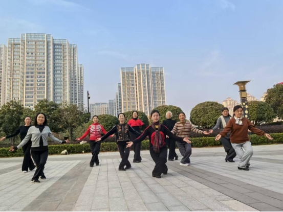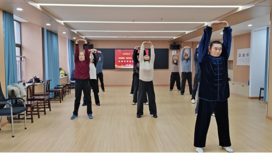 在全体合唱《没有共产党就没有新中国》红歌中开场的是太极班2025年秋季结业班会,空气中弥漫着一种温暖而庄重的氛围,像初冬清晨薄雾中的第一缕阳光。学员神情专注,动作舒缓。太极班的学员们在老师的带领下,学习太极拳的一招一式,体会“以柔克刚”“阴阳平衡”的太极理念。从起势、云手到野马分鬃、白鹤亮翅,每一个动作都要求虚实分明、刚柔相济、缓慢均匀。学员们表示,练习太极后,身体更硬朗了,心态也更平和了,在动静结合中找到了身心的平衡与宁静。